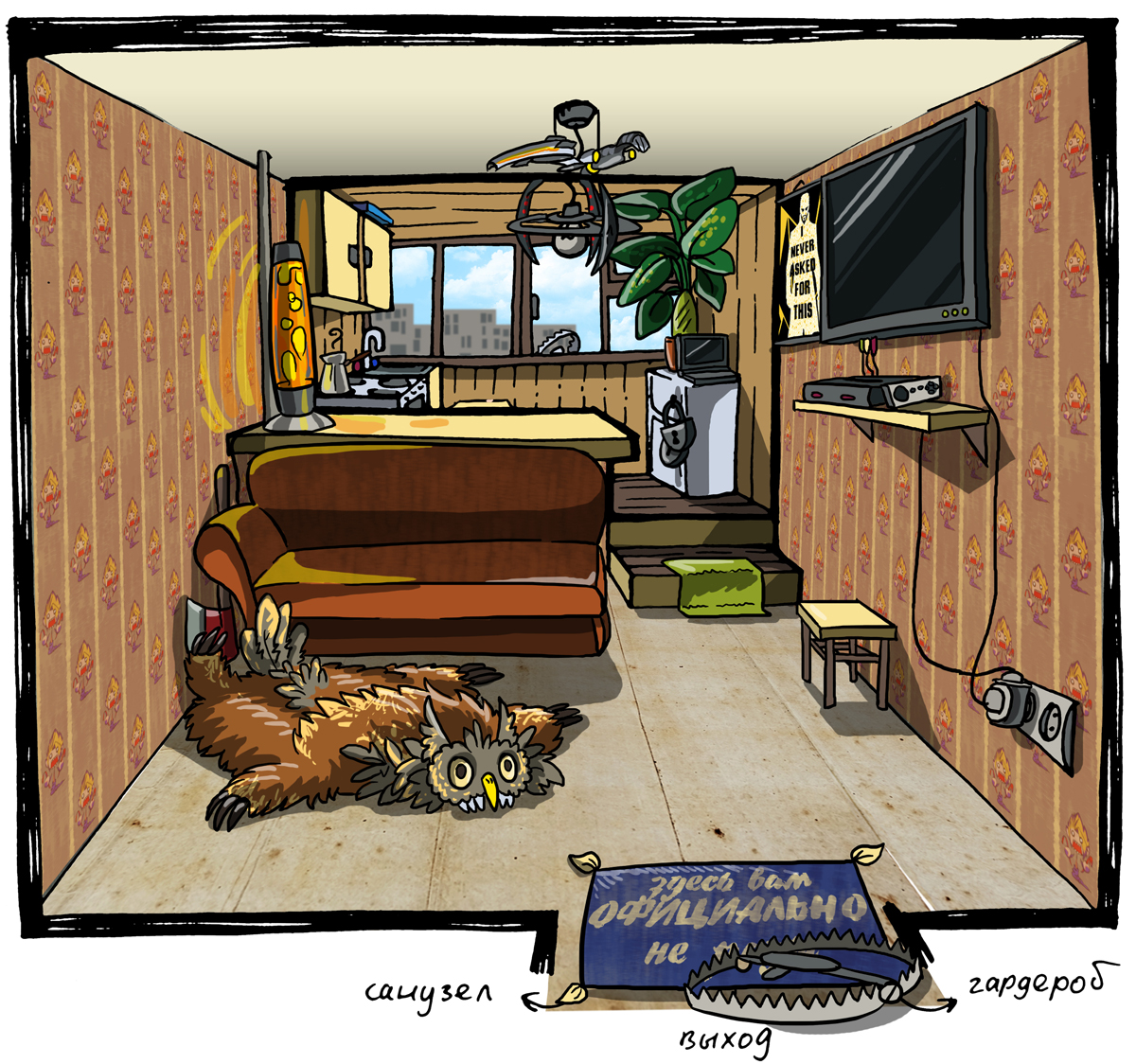 Событие марта 2014 года, когда Чувак наконец-то переехал из своей старой, сожженной и разрушенной, квартиры в новую, маленькую, но уютную. Все читатели помогали ее заполнять, подробнее о принципе работы того ивента можно прочитать в бложике . Тут же размещаются картинки того переезда в двух вариантах - как с диалогами и самим Чуваком, так и без них.голосовалки